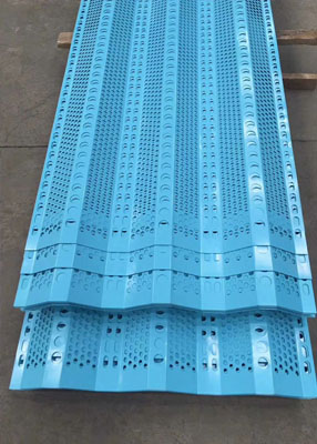 金屬防風抑塵網板材厚度0.5mm-1.5mm之間,均是由數控設備進行沖孔,成型,再進行雙面高壓靜電粉末噴涂的表面抗腐蝕處...